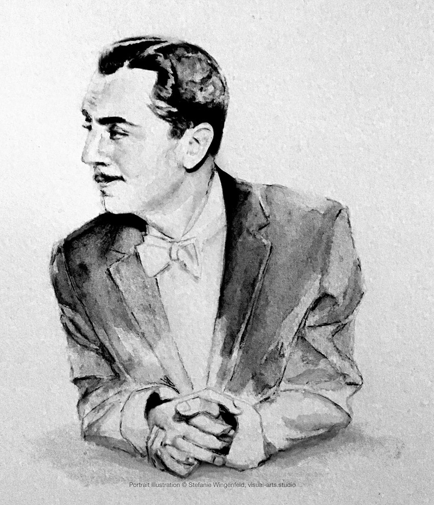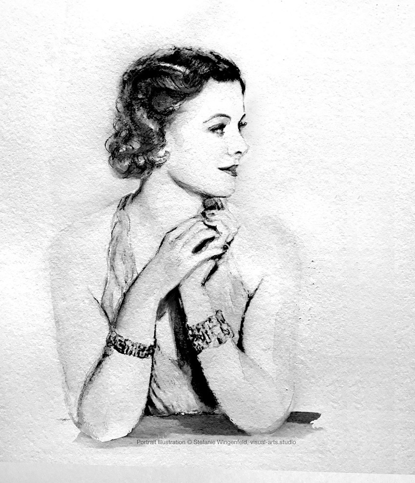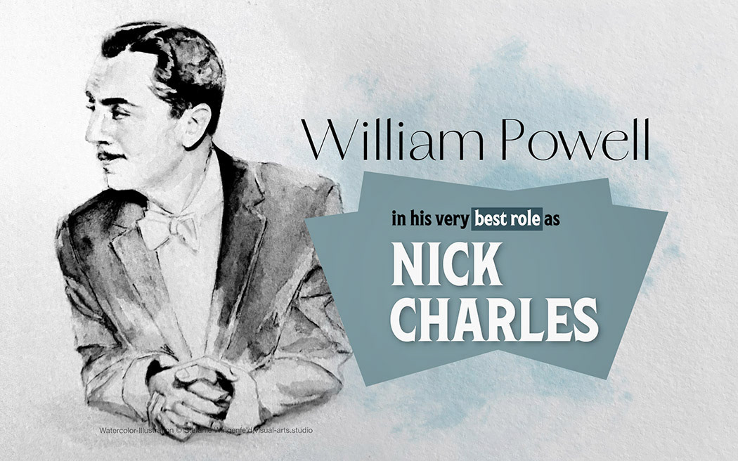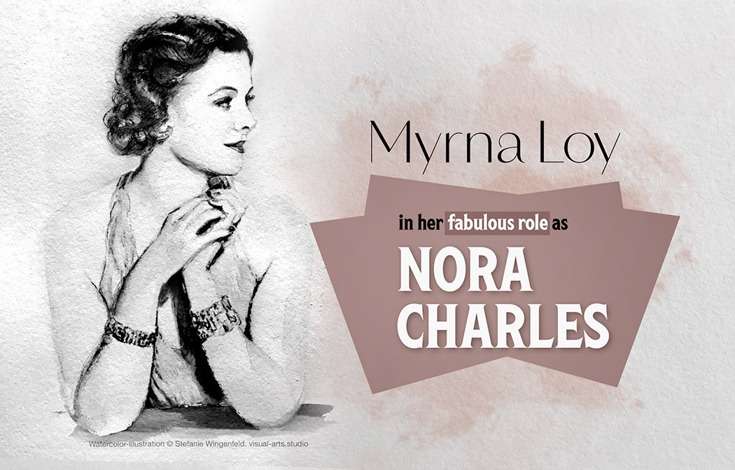Portrait drawing William Powell (as Nick Charles) and Myrna Loy (as Nora Charles). Watercolor portraits on paper; Finishing with Adobe Photoshop;