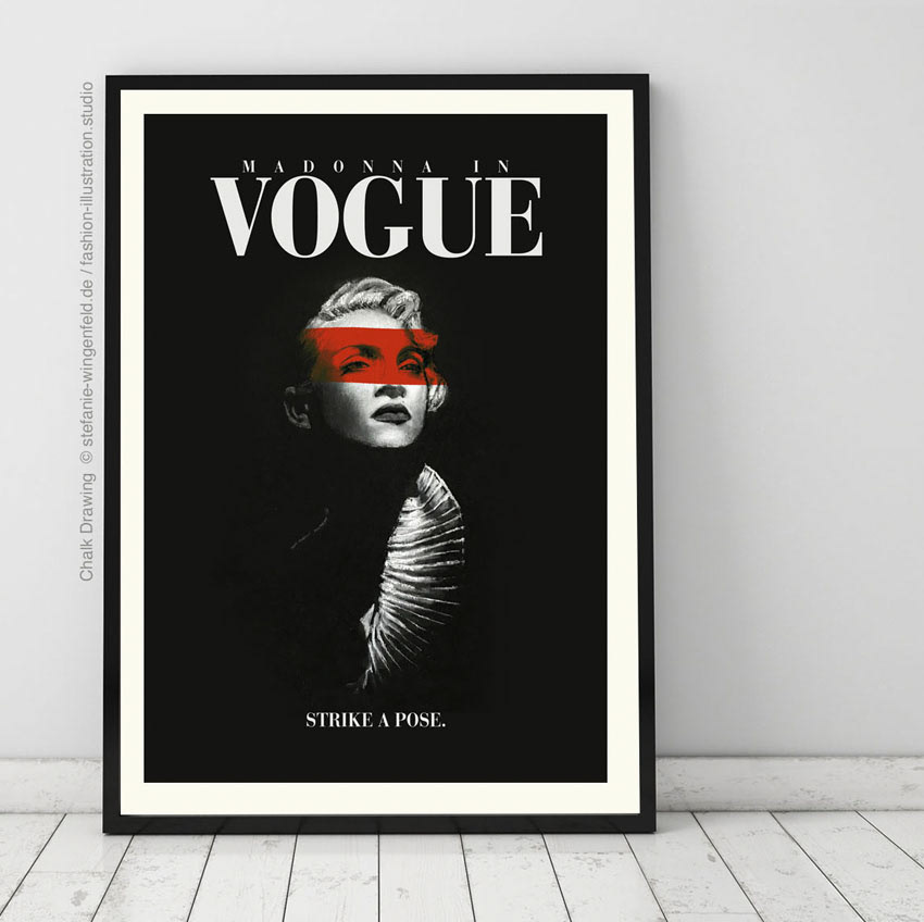 Drawing of famous "Madonna in Vogue"-Cover: Chalk on colored (black) paper; Finishing: Adobe Photoshop