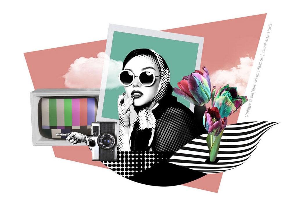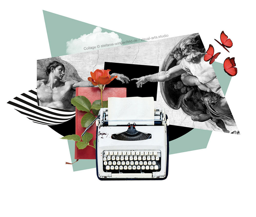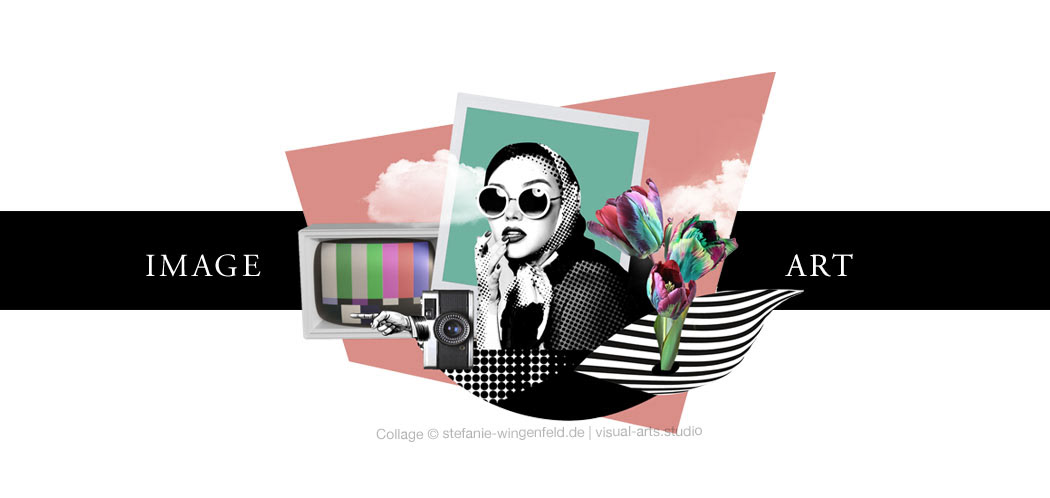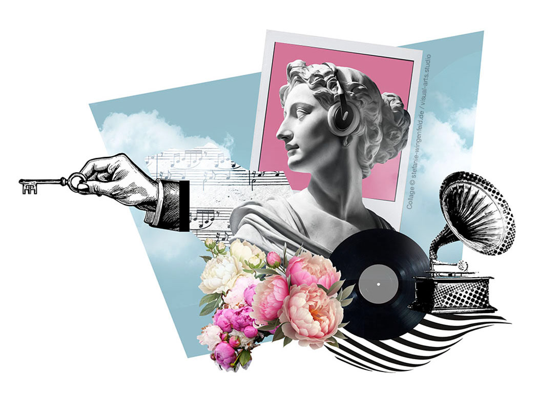 Gestaltung 3er Editorial Illustrations „Creative Arts“ als Digital Artworks / Digital Collages. 1.Motiv: BildKunst - 2.Motiv: WortKunst - 3.Motiv: KlangKunst. // Design of 3 editorial illustrations “Creative Arts” as digital artworks / digital collages. 1st motif: image art - 2nd motif: word art - 3rd motif: sound art.
