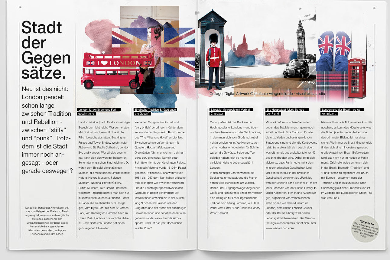 Konzeption und Gestaltung einer Editorial Collage: Kombination von analogen und digitalen Bild-Elementen (Mixed Media). / Concept and design of an editorial collage: Use of analog and digital image elements (mixed media).