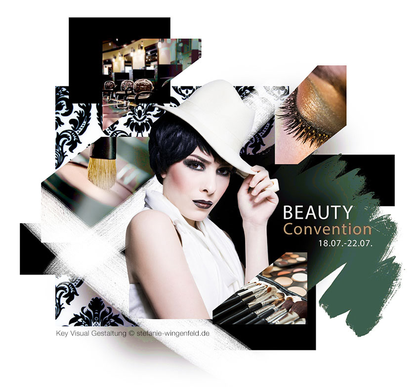 Photoshop-Composing für einen Beauty-Kongress. Einsatz der digitalen Collage auf verschiedenen Werbemitteln (Print und Digital). // Photoshop composition for a beauty convention. Use of the digital collage on various advertising media (print and digital).